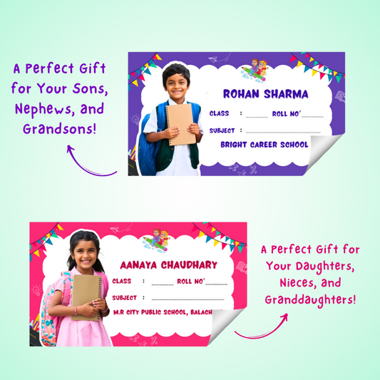 Cute & Colorful Cartoon Name Slips for Kidsโ Notebooks | Fun Cartoon Designs!